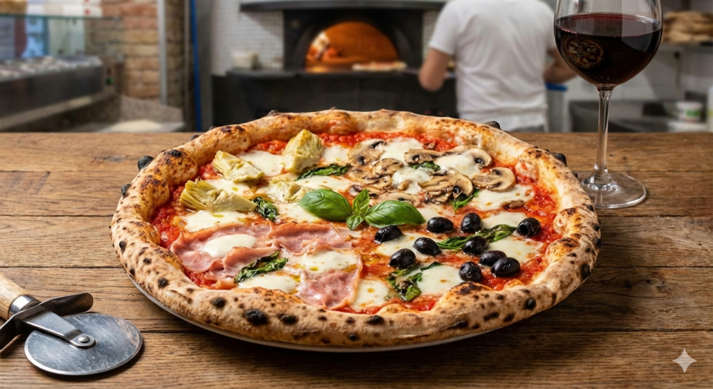 Vielseitig belegt mit Schinken, Artischocken, Pilzen und Oliven – ein italienischer Klassiker.
